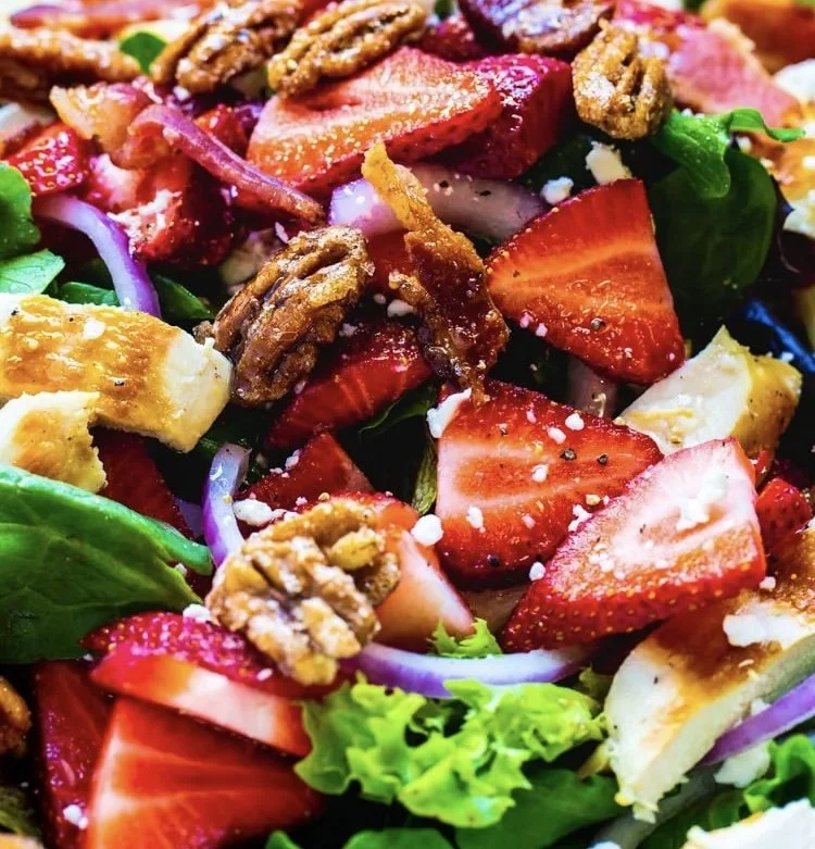 mixed greens, fresh strawberries, walnuts and blue cheese