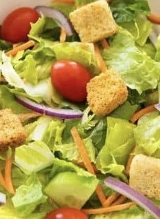 mixed greens, tomato, cucumber, onion, cheddar cheese and croutons.